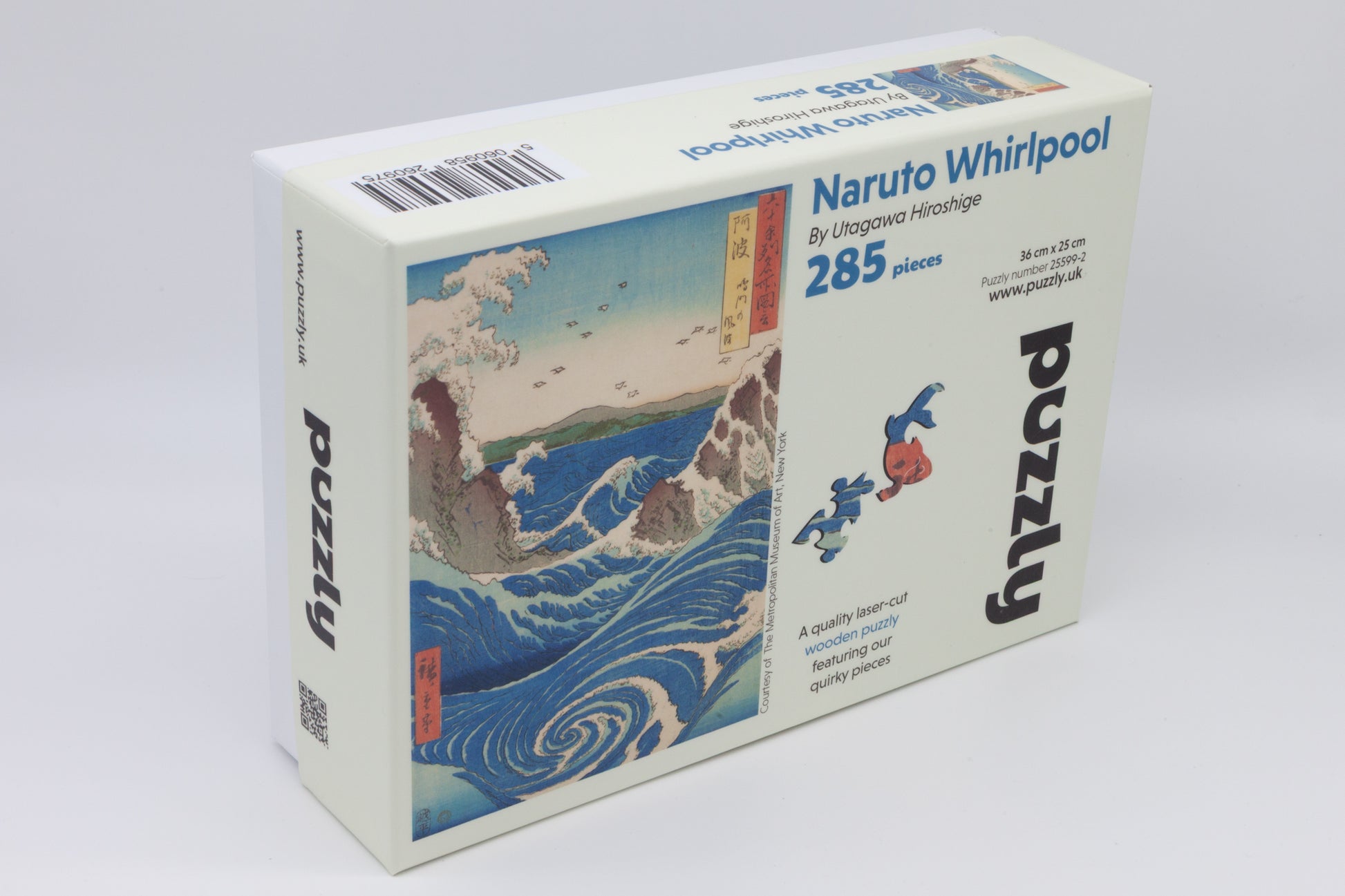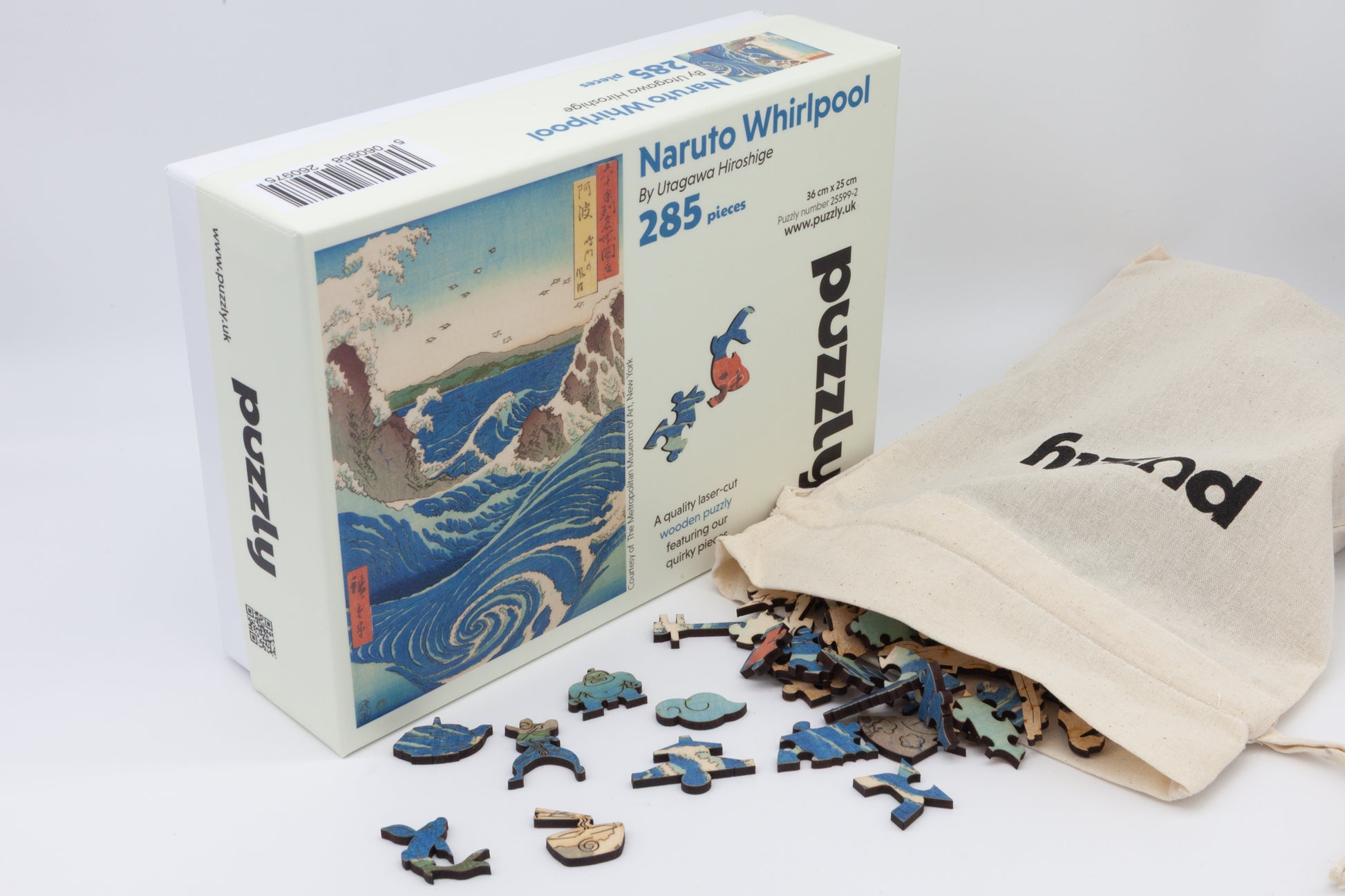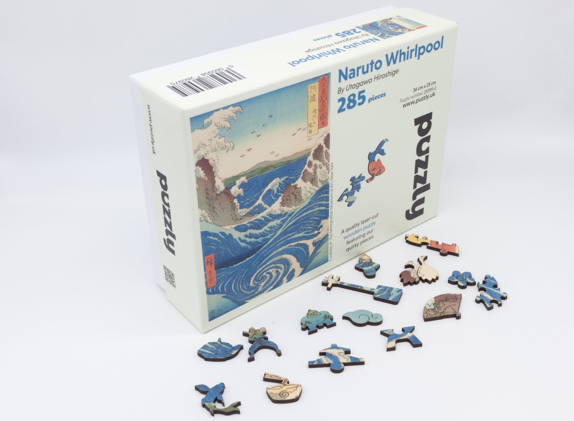 Naruto Whirlpool wooden jigsaw puzzle is a 285 piece wooden jigsaw puzzle of a Japanese woodblock print by Utagawa Hiroshige.